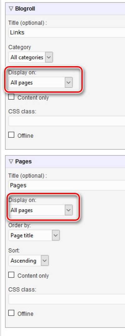 Widget 'strony' i 'blogroll' na stronie głównej i wszystkich podstronach: